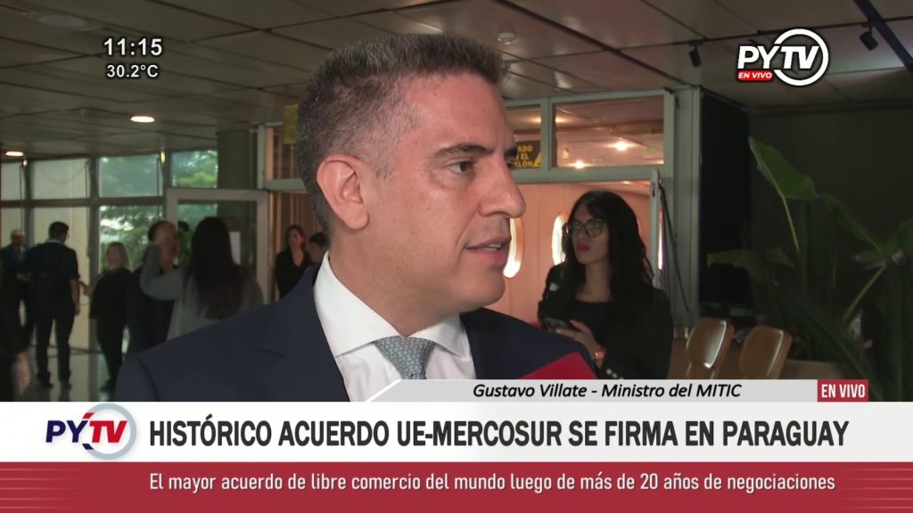 La firma del acuerdo MERCOSUR – Unión Europea (UE), cuya ceremonia se desarrolló este sábado en Asunción, abre un mercado de proporciones inéditas para la región. Ante este escenario, el ministro del MITIC, Gustavo Villate, destacó que este paso representa una oportunidad histórica para potenciar la industrialización y el crecimiento del país.