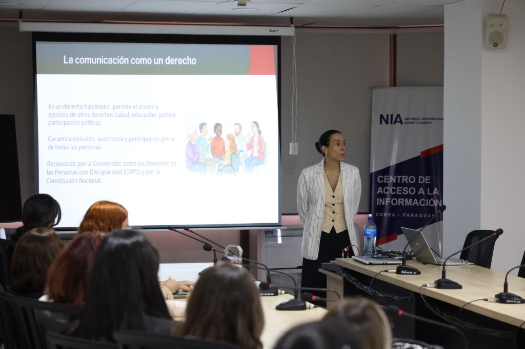 Comunicadores del Estado participaron este jueves de una capacitación sobre comunicación accesible, desarrollada en el renovado Centro de Acceso a la Información (CAI) del MITIC. La charla abordó la importancia de garantizar que el mensaje sea comprensible y alcanzable por todas las personas, sin importar sus condiciones; así como el impacto de la exclusión y cómo promover entornos accesibles desde la comunicación.