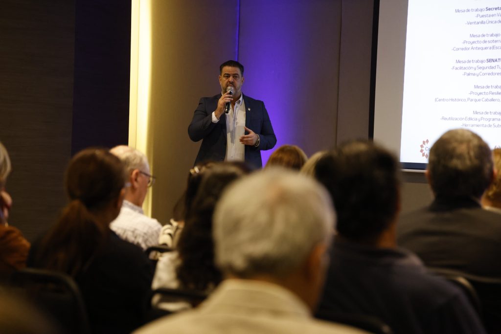 Durante el encuentro Omar Cubas, director del Centro Histórico de la Municipalidad de Asunción, presentó los avances y desafíos del Proyecto de Equilibrio Tributario del Centro Histórico, que busca incentivar la inversión y recuperación edilicia mediante la creación de la Zona Urbana 16 (ZU16), aprobada por las ordenanzas 193/25 y 196/25.