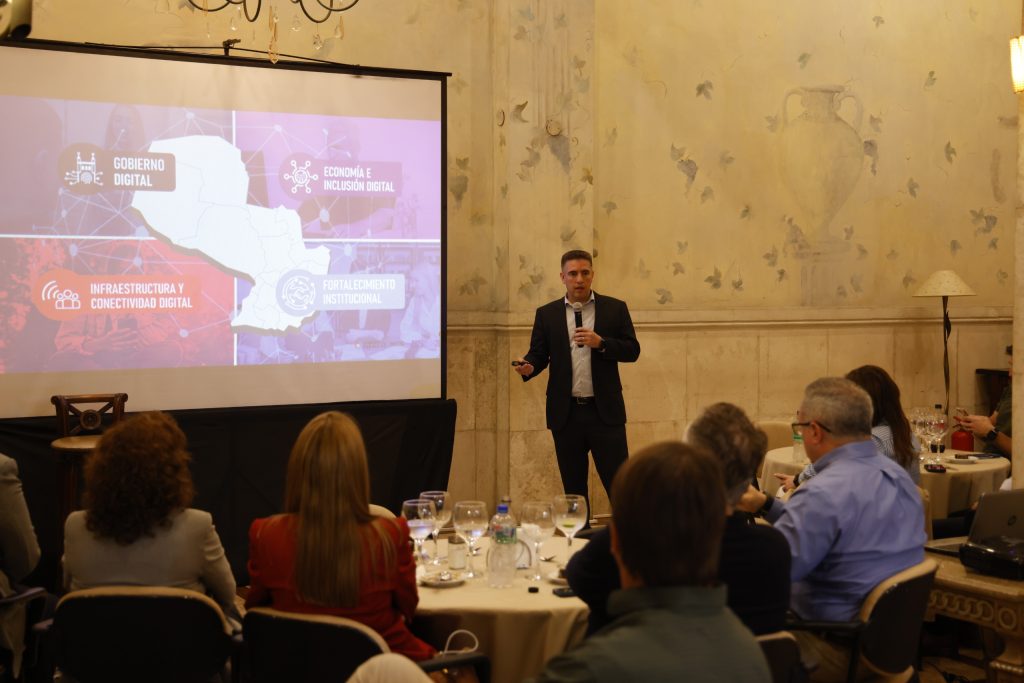 En representación del Ministerio de Tecnologías de la Información y Comunicación (MITIC), el ministro Villate expuso que la transformación digital no se limita a la construcción de tecnologías, al considerar que esto implica generar inclusión, eficiencia y oportunidades para toda la ciudadanía. En ese marco, presentó los ejes del Programa de Apoyo a la Agenda Digital que son Gobierno Digital, Economía e Inclusión Digital, Infraestructura y Conectividad Digital, y Fortalecimiento Institucional.