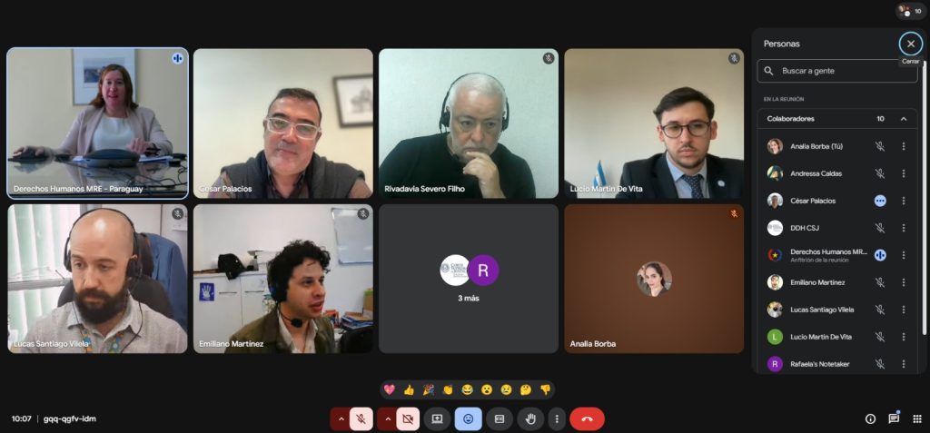 Otro de los ejes centrales de la reunión fue el fortalecimiento de la Comisión Permanente de Comunicación en Derechos Humanos, promoviendo una mayor articulación con otras comisiones de la RAADH y con espacios vinculados del MERCOSUR. En este sentido, se destacó el trabajo conjunto con el Grupo de Trabajo de la Campaña Regional DRX, como una herramienta clave para amplificar mensajes y acciones regionales en derechos humanos.